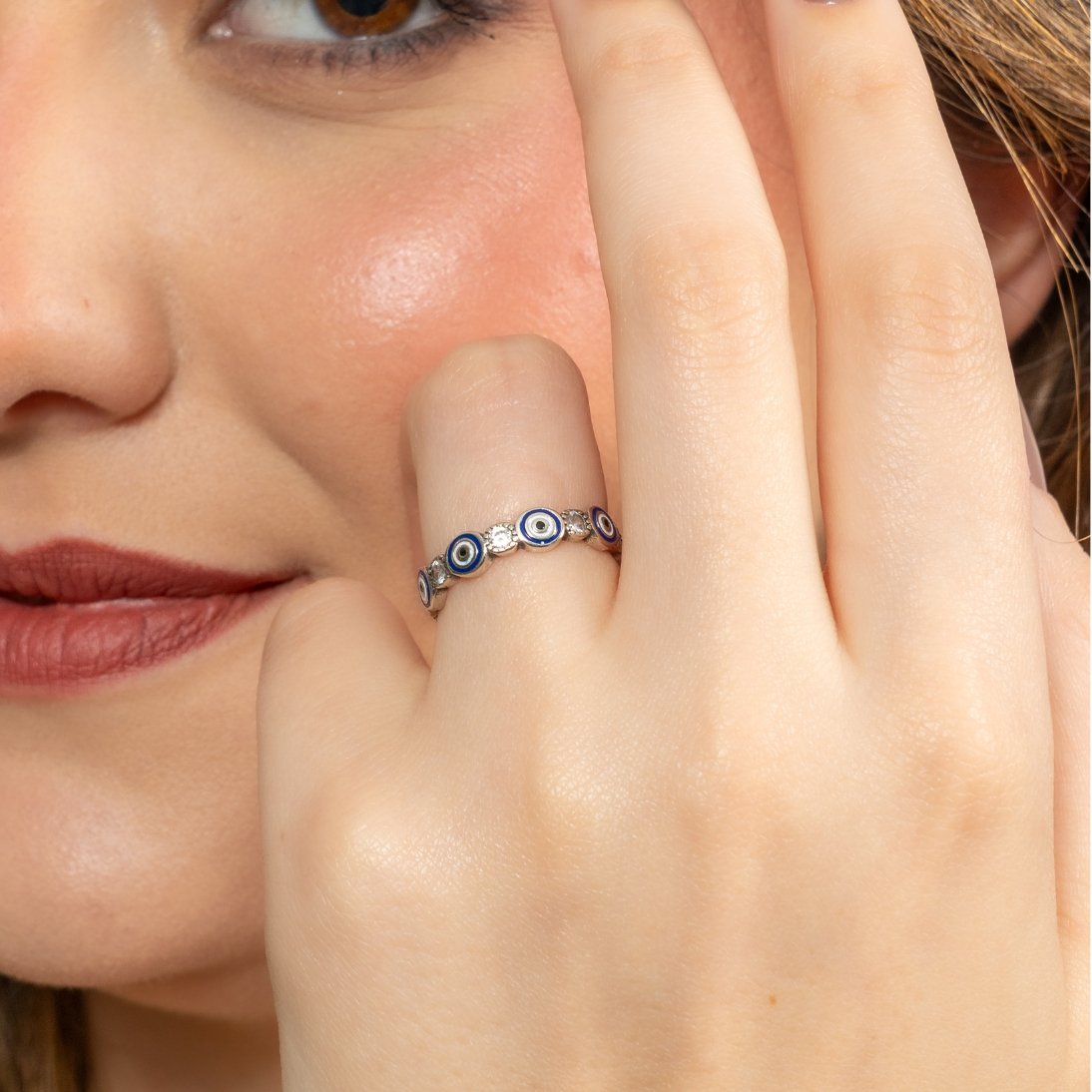 Descubra o Elegante Anel de Prata Olho Grego com Brilhantes